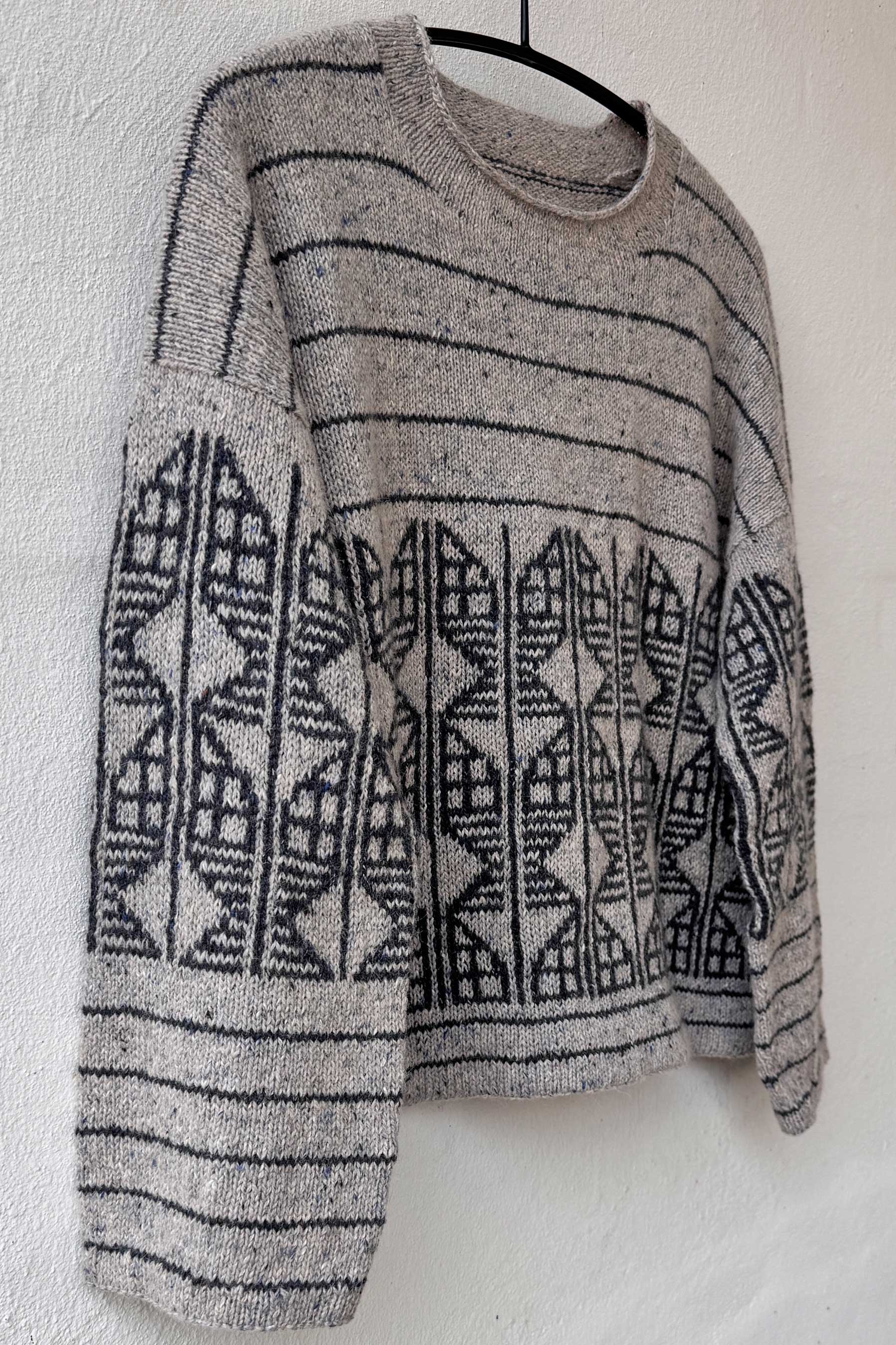 Til ærmer rundpind 40 cm og strømpepinde 3½ og 4 mm eller strik Magic Loop på rundpind 80 cm.